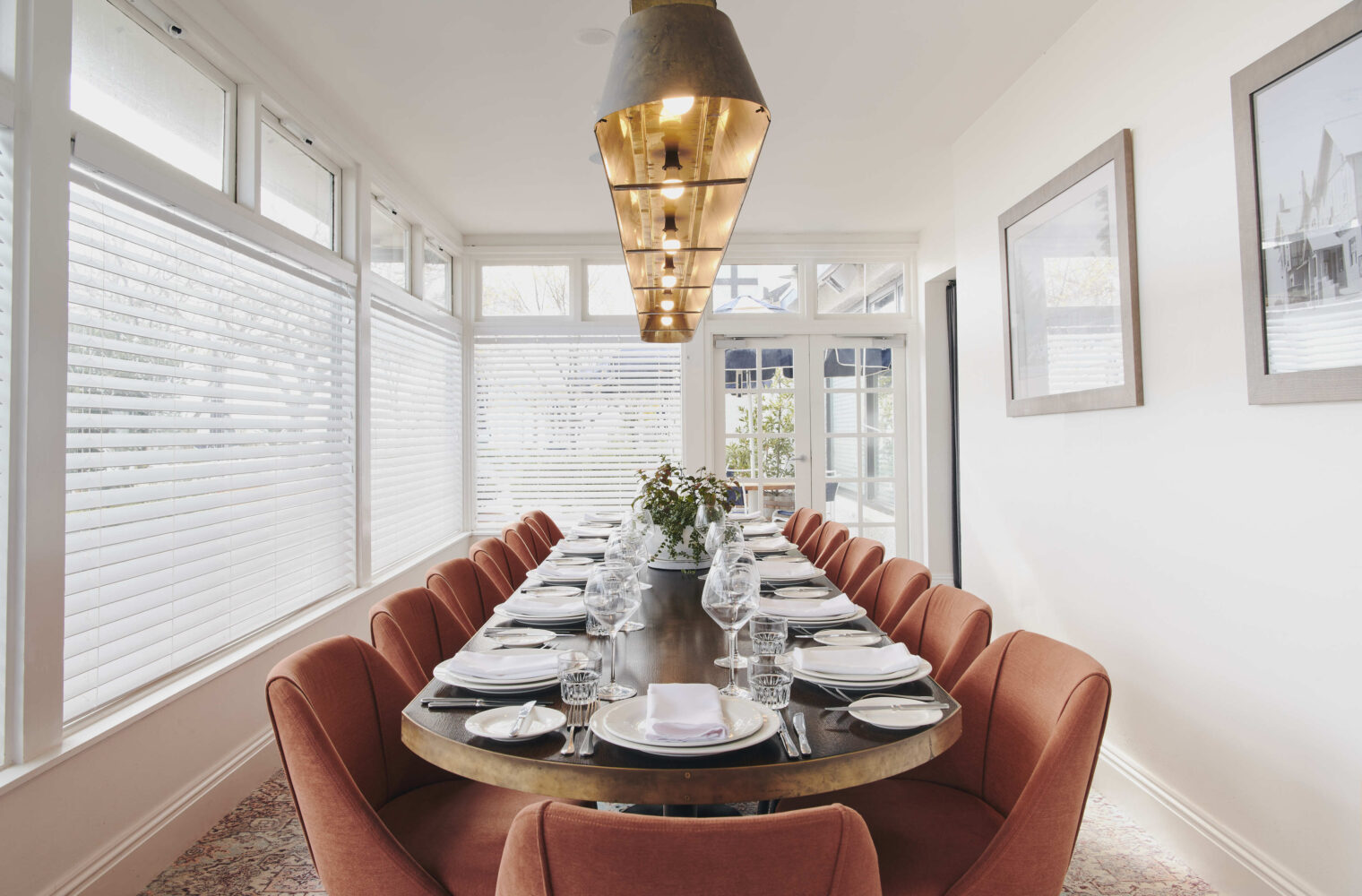 A bright, airy yet intimate private room with gorgeous bay views and easy access to our beautiful outdoor deck areas. Perfect for celebratory lunches, dinners, small scale conferencing, meetings and wine events. This space has its own private bar, premium glassware and waitperson. A variety of delightful set menu options apply for this space.